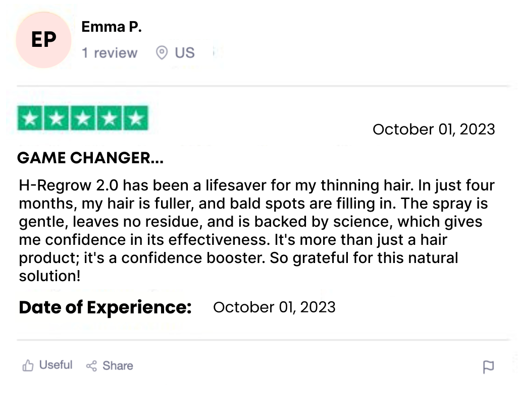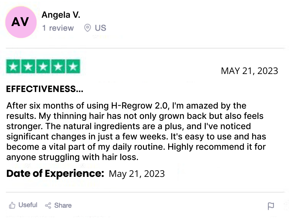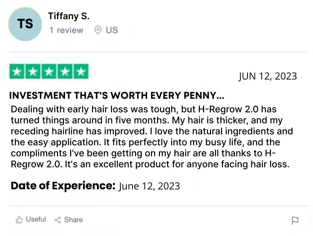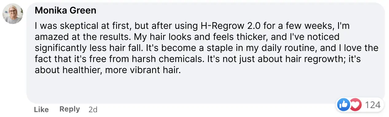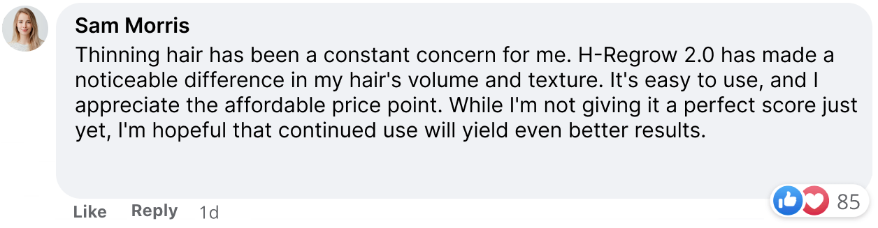 "I've tried various hair products over the years, and H-Regrow 2.0 is one of the more affordable options I've come across. It has genuinely improved the thickness of my hair, and I've experienced less shedding. While it's not a miracle solution, I'm satisfied with the purchase and will continue to use it."