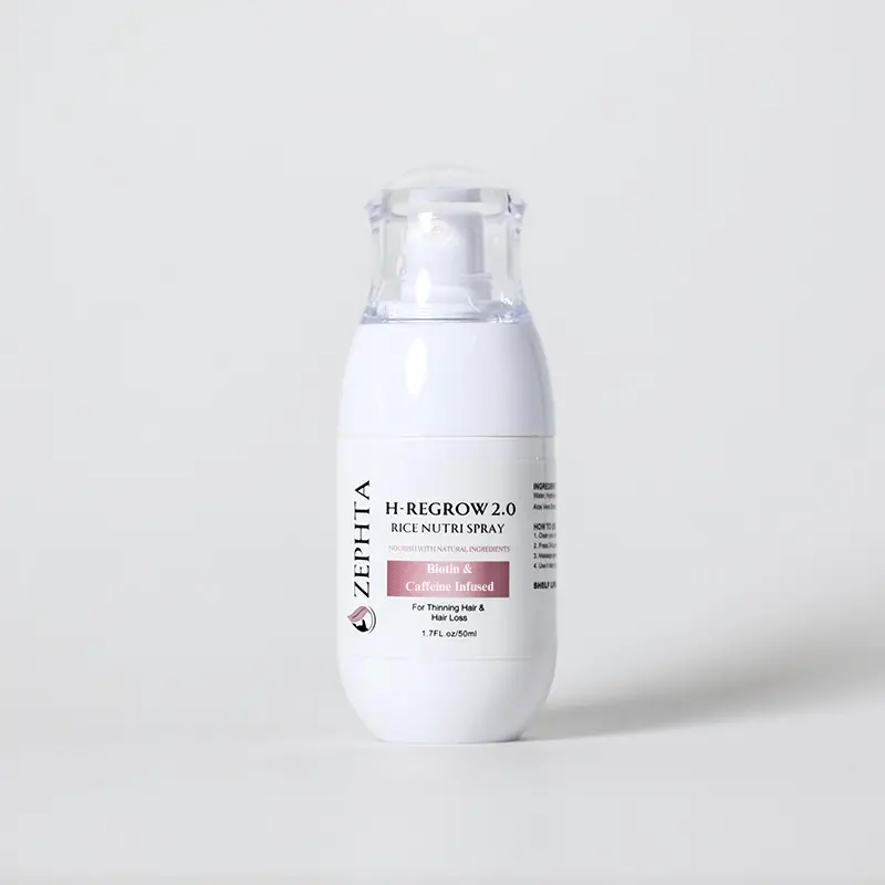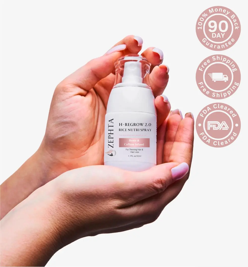 Zephta® H-Regrow 2.0 is a hair revitalization spray designed to promote hair follicle health, reduce thinning, and strengthen hair. It works by delivering a blend of plant-based ingredients, antioxidants, and amino acids directly to the scalp, nourishing and rejuvenating your hair for a fuller and healthier look.